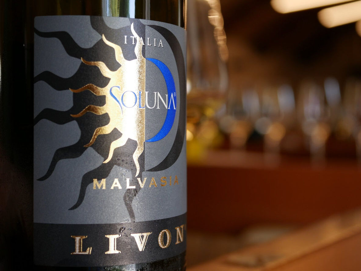 Еще одно вино из Collio доставляет не в меньшей степени. Стопроцентная мальвазия — Soluna — своей этикеткой напоминает Luce от маркизов Фрескобальди: тема солнца вообще не оставляет семью Ливон в покое. Впрочем, вторую половину этикетки благоразумно занимает Луна. Тсссс… Ничего не скажем маркизам! Я не могу нарадоваться на это вино — в Коллио вообще все большие оригиналы. Ягоды мальвазии после сбора тут подсушивают в течение десяти дней. Как я уже начала понимать, все эти вина следуют одному и тому же процессу, оставаясь после ферментации больше полугода на осадке, чтобы впитать всё, что впитать возможно и продемонстрировать сложность и тело. Копченая рыба и морепродукты тут в самый раз. Mi piace!